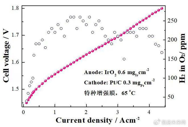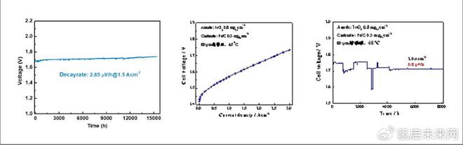 氢锐科技采用卷对卷批量制备,膜电极活性面积可达4000cm2,贵金属用量1.1 mg/cm2、涂布厚度控制精度≤ ±2%、催化剂担载量偏差≤ 2.4%、性能优(1.71 V@2.0 A cm-2)、一致性好(批次极差≤10mV)、长寿命(设计寿命≥100,000 h,实测≤1 μV/h@8000h)。